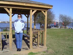 Battleship Texas in the background.