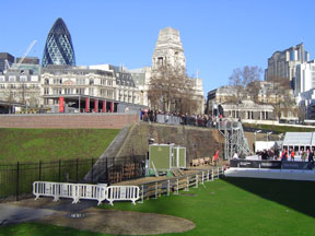 Tower Of London With The Financial District Buildings In