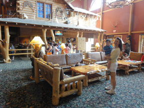 Sawyer Checks Out The Singing Tree In The Hotel Lobby