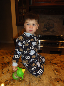 Sawyer Enjoys Pancakes And Sitting On The Island On A