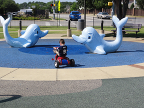 through water at the park - Mom forgot about