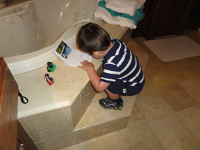 Sawyer With His New Fire Truck