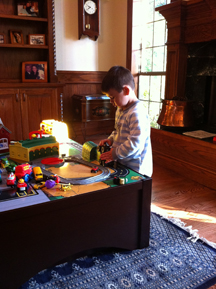 Playing with his new LEGO before school.