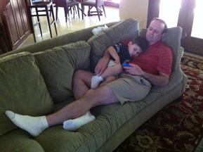 Sawyer and Daddy take a break in the middle of the