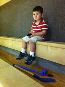 Sawyer Watches The Big Kids Play Hockey